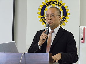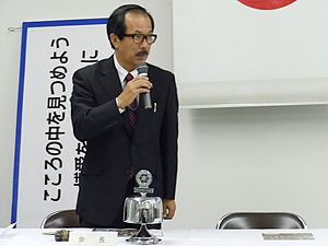 ![]() ゲストを紹介する宇根会長 |