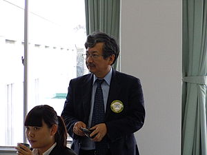 ![]() プログラムを紹介する宮野委員長 | ![]() 話を始める山北さん |