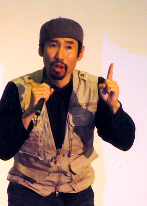 20歳の時に旅行先のアフリカで戦争に巻き込まれた少年たちに出会ったのをきっかけに、戦場カメラマンを志したエピソードを紹介。イラクで撮影した戦車の前にうずくまる男性や、劣化ウラン弾の被曝(ひばく)で白血病になった子どもの写真などを見せながら「石油のために戦争が起き、被害に苦しむ人がいる」と訴えた。